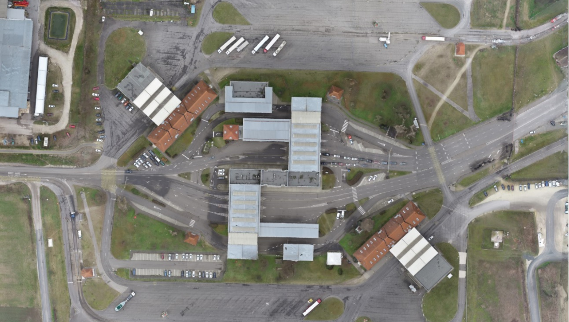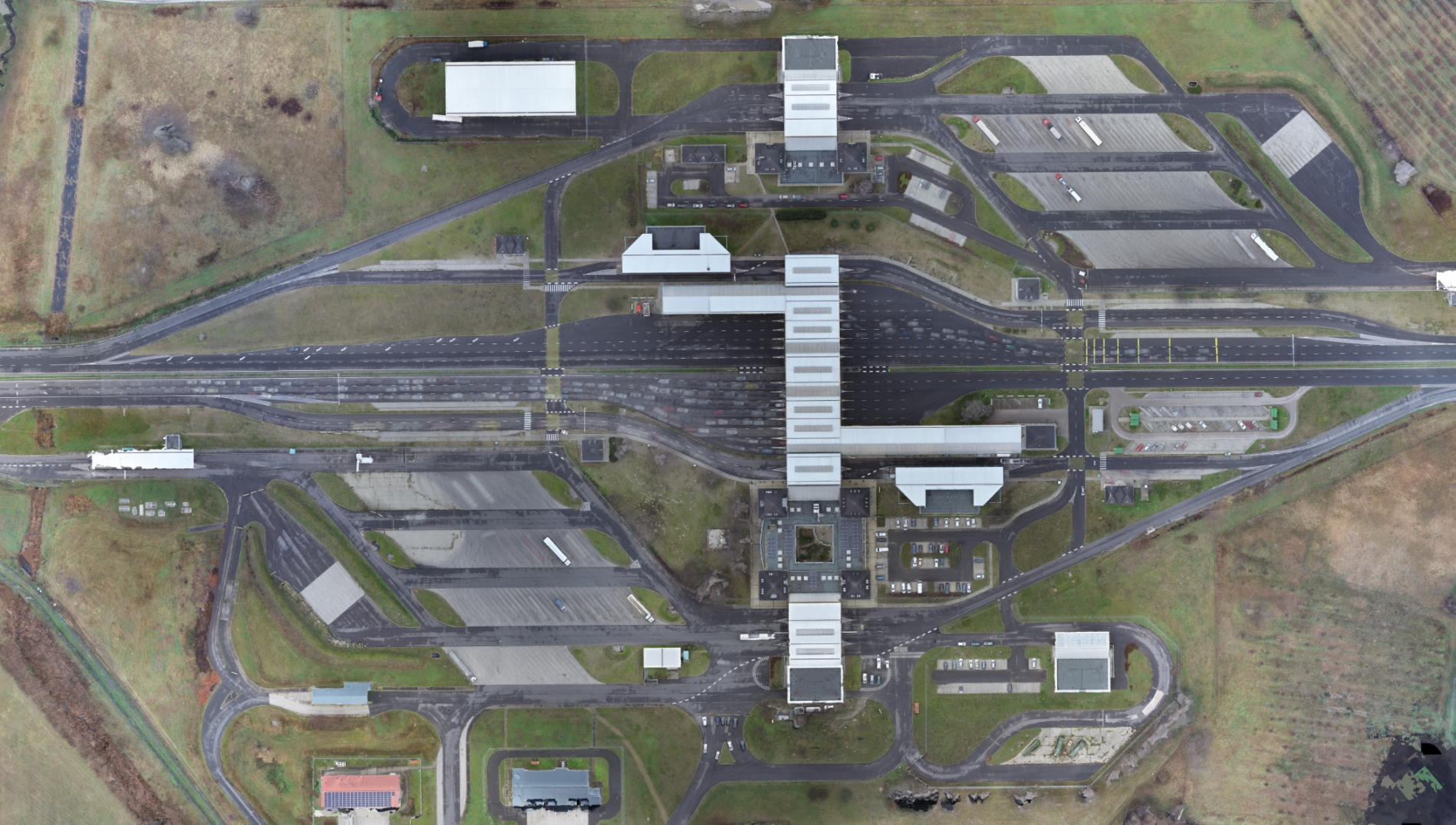 A két ország közötti megnövekedett forgalom következtében bővítésre / átépítésre szorultak a röszkei és a tompai határátkelők. A tervezési fázist megelőzően készítettünk pontfelhős felmérést, illetve a drónos fotogrammetriai eljárással generáltunk orthofotót.