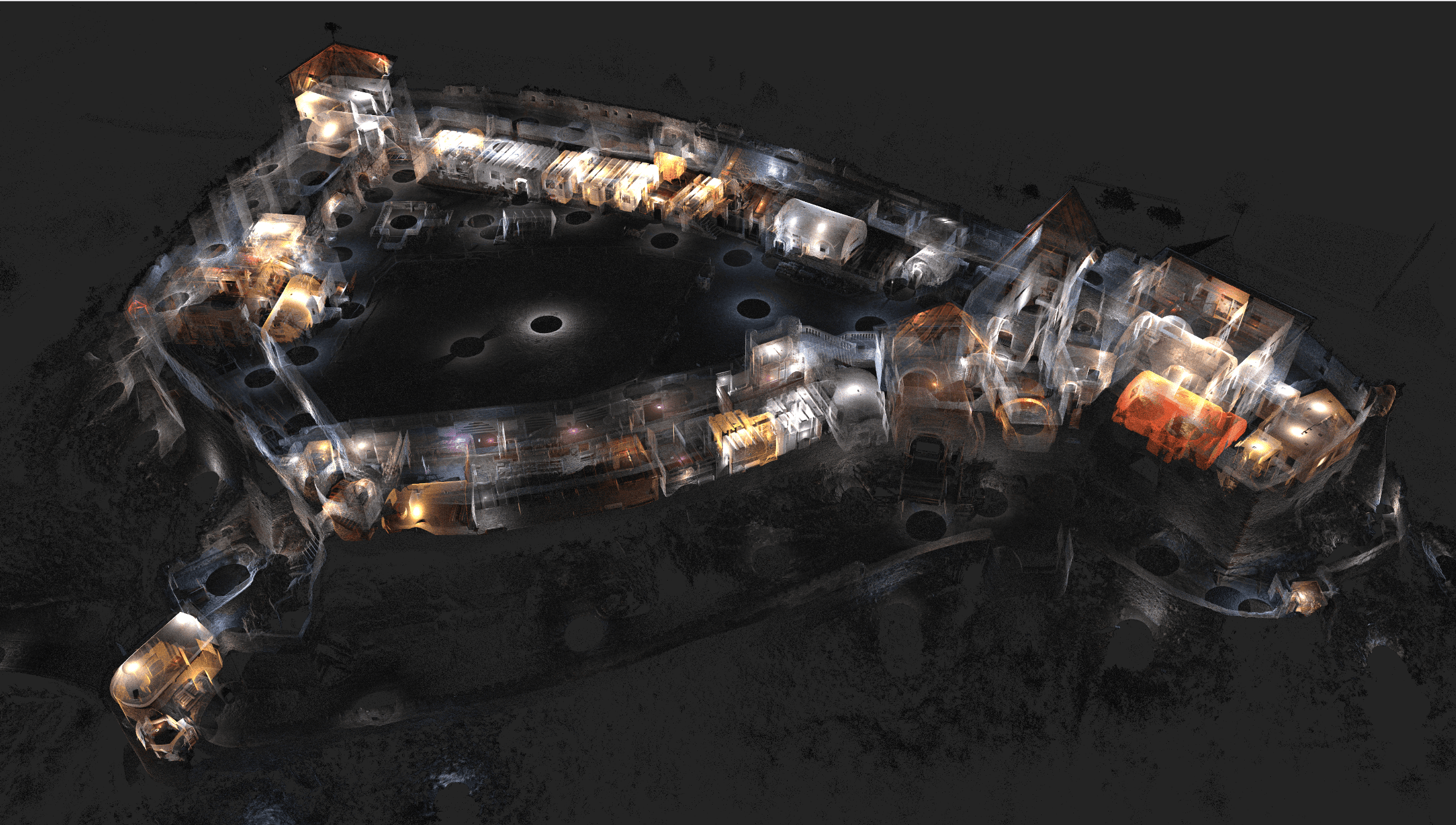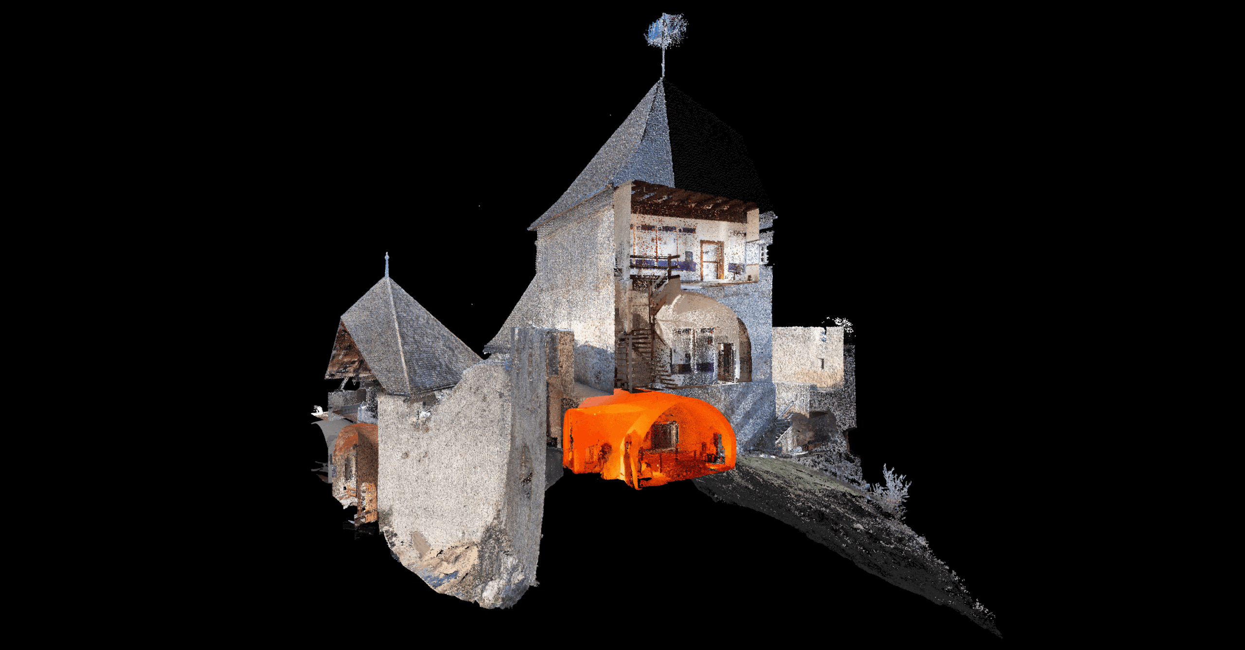 A Sümegi vár teljes területét 3D lézerszkenneléssel és drónos felméréssel rögzítettük. A lézerszkenner és a drón együttes használatának köszönhetően alapos, milliméter pontos 3D felmérést készítettünk a középkori várfalakról és belső terek részleteiről. Az így készült digitális alapok lehetővé tették a műemlék valós állapotfelmérését, valamint a későbbi rekonstrukciós és tervezési munkák hatékony támogatását.